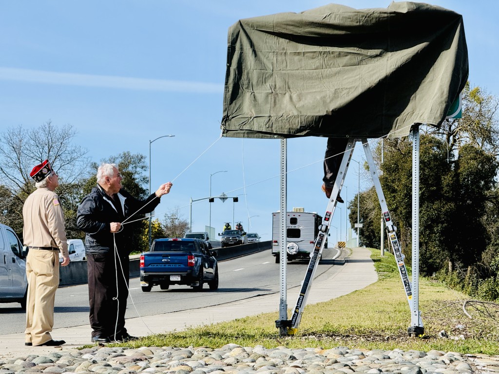 After the ceremony in Yuba City, attendees crossed the bridge to the Yuba County Office of Education parking lot in Marysville. Select veterans, including O’Connor, signed a commemorative plaque that will be installed behind the new bridge sign.