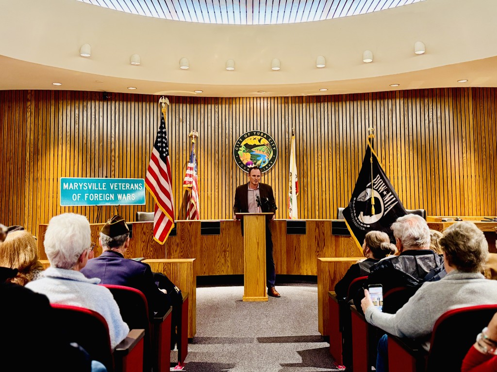 Army veteran and former prisoner of war Mike O’Connor addressed attendees during a ceremony at the Yuba City Council chambers.