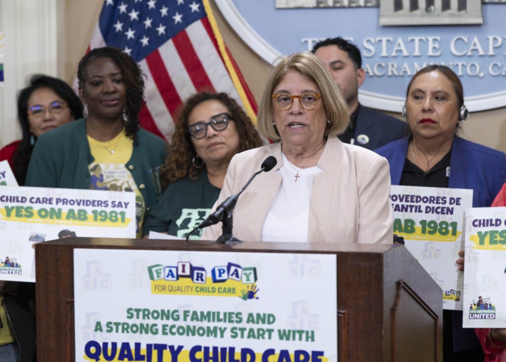 “Childcare is essential to our workforce and economy, yet too many families are struggling to afford it while providers are underpaid,” Aguiar-Curry, D-Winters, said during a press conference.