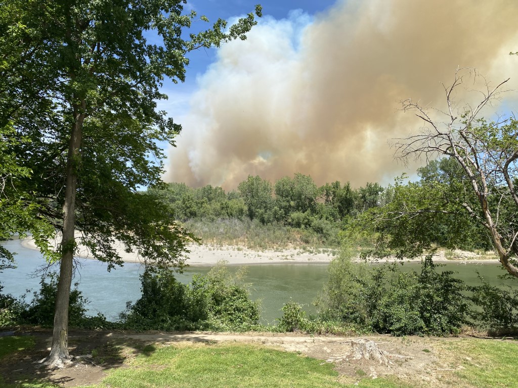Sacramento River Fire Protection District firefighters responded to the vegetation fire on the west side of the river near Brown Road around 12:40 PM. A second fire was reported on the east side of the river around 1:45 PM, which also threatened Boggs Equipment repair on River Road, and an evacuation advisory was given to all residents in the area.