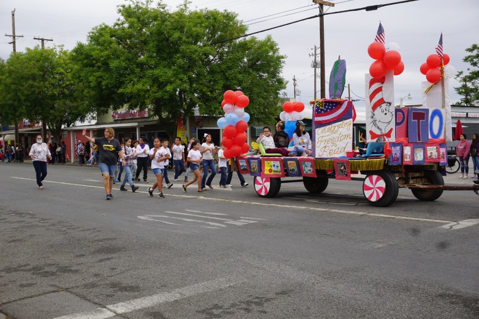The Veterans of Foreign Wars Post No. 2447 led the parade, followed by emergency vehicles, decorated floats, vehicles, and walking groups.