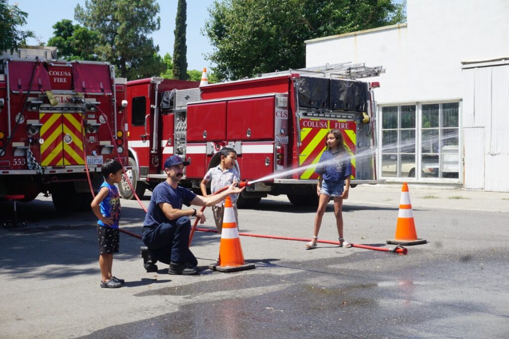 Colusa’s future firefighters take turns manning the hoses at Founders Day on Saturday, which celebrated 150 years of Colusa Fire Department’s service to citizens.