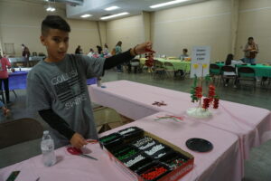 Isaac Serrato, 11, of Colusa 4-H volunteers in the Princeton 4-H booth at Saturday’s Craft Expo teaching others how