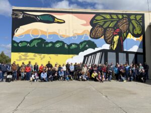 Visitors also gathered for a group photo at the unveiling of Haden Keeley’s mural at Sunrise Fresh, visible to motorists traveling into Colusa on Highway 20, before traveling to Barb’s Fruit Stand for a tractor tour of orchards and lunch, provided by the Glenn-Colusa Cattlewomen’s Association.