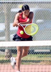 No. 3 Vianey Farias, in her first appearance this season, wasted little time in claiming a 6-0, 6-2 win, while the rest of the ladder including No. 4 Ashley Perez (6-0, 6-2), No. 5 Janell Garcia (6-0, 6-0) and No. 6 Miranda Perez (6-2, 6-1) made quick work of the Cubs’ singles as well.