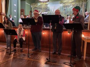 Members of the public filled the museum and joined in singing What Child is This, Joy to the World, and other holiday favorites.