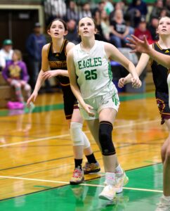 Princeton’s Sissy Winn corralled six rebounds for the Eagles in their final game of the season played in Hayfork on Feb. 26.