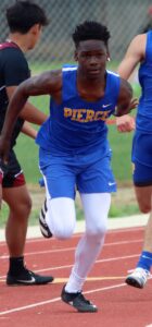 Pierce’s 4 x 100 relay team, which included Drew Burnum, Jonathan Vazquez Hernandez, Jamison Porter and Nate MacIntosh established a new record after crossing the line in third in a time of 45.77.
