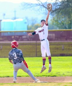 RedHawk second baseman Ashton Gutierrez elevates to catch a high throw and hold Winters’ base runner Derrick Collins on the bag.