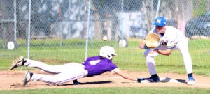 Maxwell first baseman Alex Krug takes the pickoff throw in the Panther’s win over Portola on Apr. 2.