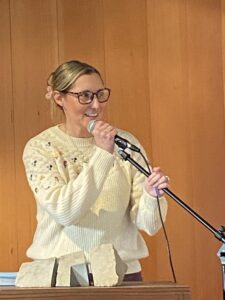 VYCR Committee member Loni Gross performs at the Pride and Prejudice-Themed Live Lit on April 3 at Salmon Bend Art Studios, where several community members read their own literary work or the work of others.