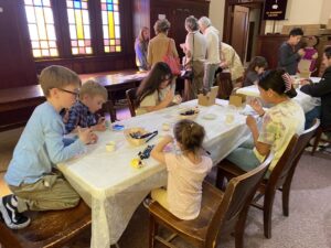 Youth and adults enjoy teacup painting at the 2025 VYCR event at St. Stephen’s Episcopal Church on Saturday.