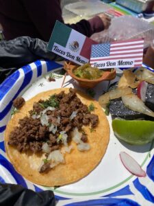 Tacos El 88, the champion of the first Guerra de Tacos, held on Sept. 16, 2023, to recognize the more widely celebrated Mexican Independence Day, faced off against new or returning competitors: Takitos El Charquito, Tacos Rivera, Taqueria Del Pueblo, Lucita’s D’licia, and Tacos Don Memo. Each vendor showcased their unique culinary creations, but it was Tacos Rivera who won first place in the taco competition with their tasty, marinated pork wrapped in a grilled corn tortilla.