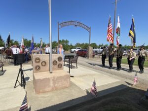 Members of the Maxwell American Legion Post No. 218 and Colusa Veterans of Foreign Wars Post No. 2441 served as the honor guard, making their way from Colusa to Williams to Maxwell, where they proudly honored those killed in military service with a vast display of flags and a three-volley gun salute at each location. Zach Dennis performed “Taps.”