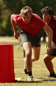 The RedHawks’ Cade Smith runs a drill during a workout in Colusa on June 16.