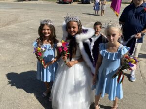 Fallyn Mendes, daughter of Brad and Gabby Mendes, was Little Queen. Her sidemaids were Paisley Pacheco, daughter of Anthony Pacheco and Catt George, and Cora Langerwerf, the daughter of Leigh and Cassi Langerwerf.