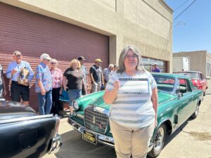 The Studebaker gathering on Sept. 13, brought those stories back into focus. About a dozen cars lined 5th Street, their chrome and curves reminders of a different time. Members of the Karel Staple Chapter affixed a Studebaker emblem to the headstone of Stanley and CeCelia Atran at the Arbuckle Cemetery, connecting memory to stone. Francee joined them in touring the remodeled building, pointing out where her father’s office once stood, where the showroom hosted conversations and deals.