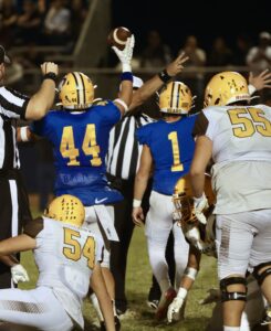 Things went all the Bears’ way at the outset, when on the third play from scrimmage Austin Jorge stepped in front of a ‘Jacket receiver and picked off the pass just outside the red zone at the 23.
