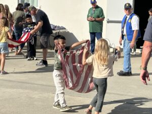 MAXWELL, CA (MPG) — More than 200 Maxwell Elementary students joined local veterans Thursday, Sept. 25, at American Legion Post 218 for a flag retirement ceremony that honored more than 150 worn American flags.