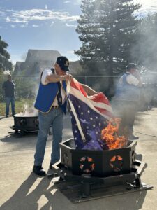 The ceremony also provided practical lessons. Veterans explained that flags made from natural fibers such as cotton or wool may be safely burned, while synthetic materials like nylon or polyester can release hazardous fumes and should be done in safe conditions. The goal is to get a hot enough fire that the flag is fully consumed.
