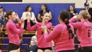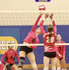 MAXWELL, CA (MPG) – Sporting their pink October jerseys for breast cancer awareness, the Panthers proved to be ungracious hosts as they out-served visiting Biggs to capture a Mid-Valley League contest by scores of 25-20, 25-20, 25-18 last Thursday night.