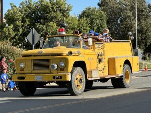 Arbuckle Fire Department Engine 1 carries local children along Fifth Street during the Pierce