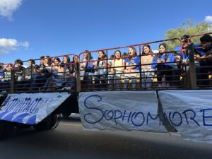 Sophomores waved to spectators from their Disney Channel-themed float during the Pierce