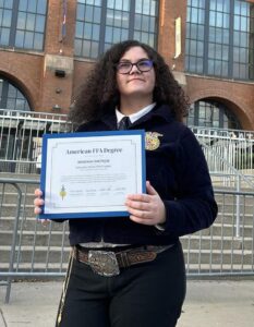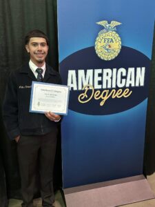 The degree was conferred at the 98th National FFA Convention & Expo on Nov. 1, 2025, where each recipient received a gold American FFA Degree key and a certificate.