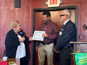 To close the program, Alaidarous inducted Colusa’s newest member, Robert Cardenas, and welcomed him to the club. She then presented Rotarian Antonio Ortiz with the special Bridge Builder Award.