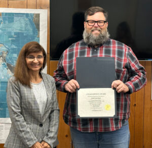 Colusa, CA (MPG) – Ishrat Aziz-Khan (right) is recognized for five years of service as the City of Colusa finance director during the City Council meeting on Dec. 16. Colusa Mayor, Ryan Codorni presents Aziz-Khan with a certificate. Aziz-Khan joined the city in December 2020 after 14 years serving as finance director for the City of Gridley