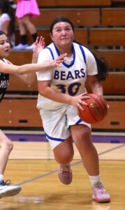 Pierce’s Jaslene Condrey looks for a baseline shot in the Bears’ 41-43 loss to Willows on Jan. 3