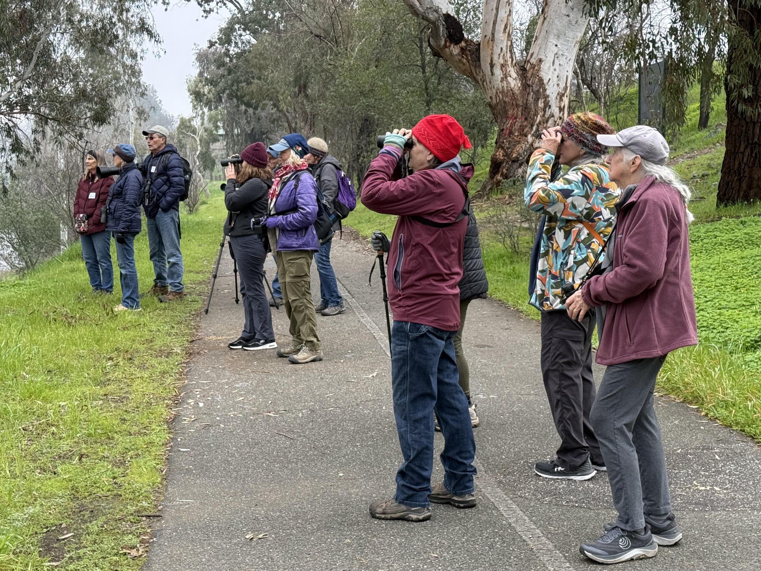 A new field trip on opening day sent participants to the Feather River in Oroville, where longtime birder Karen Von Bargen led a slow, observation-focused walk along the 3.5-mile Parkway to highlight winter ring-billed gulls, mergansers, herons, raptors and other riparian species.