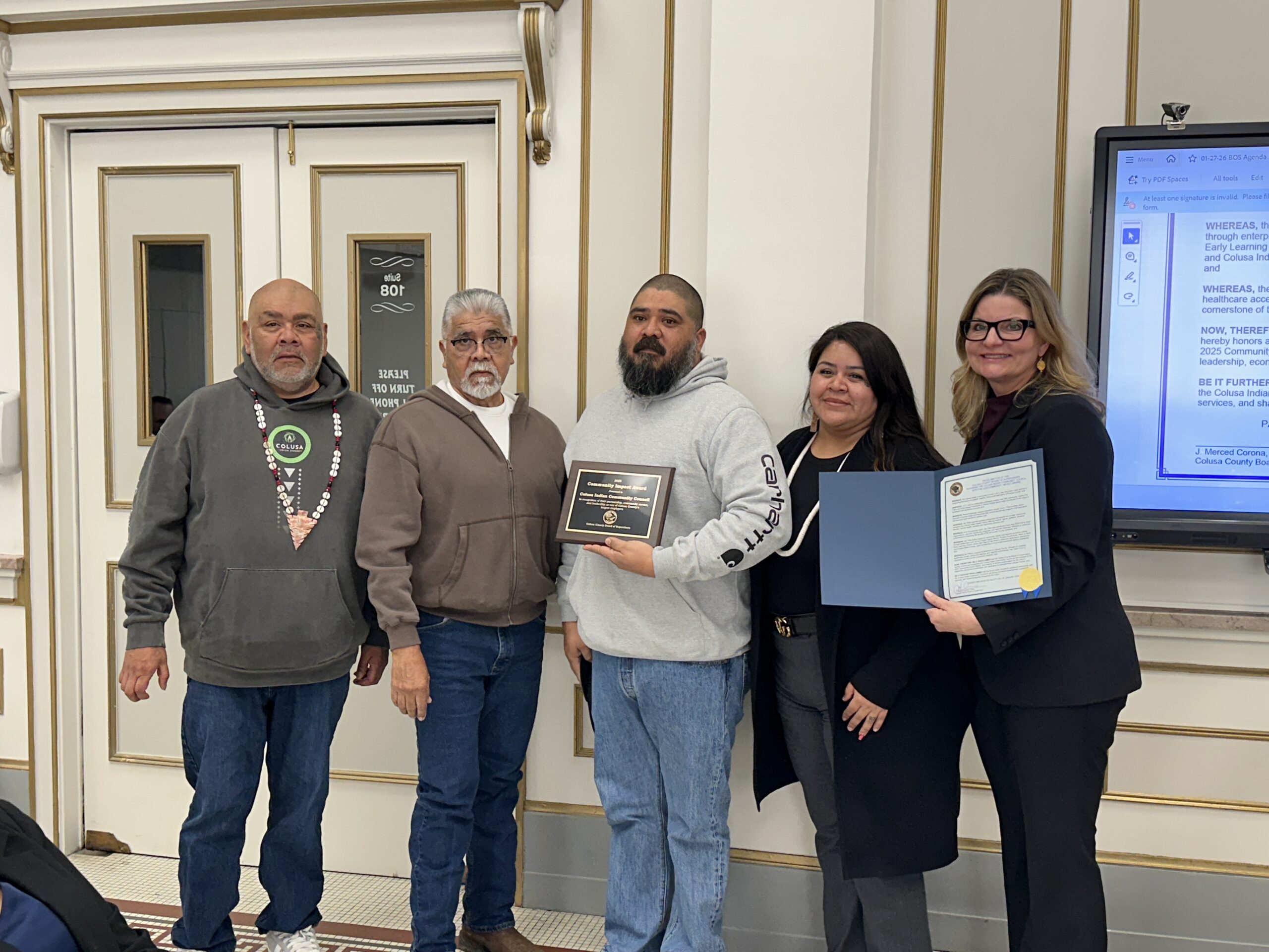 COLUSA, CA (MPG) – The Colusa County Board of Supervisors adopted a proclamation Jan. 27 recognizing the Colusa Indian Community Council as the recipient of the county’s first Community Impact Award.