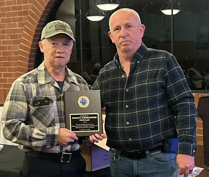 Among those recognized was Richard Lau, who received Exempt Member status for his years of commitment to the department. Lau was presented with a plaque by Williams Fire Chief Jeff Gilbert during the ceremony.