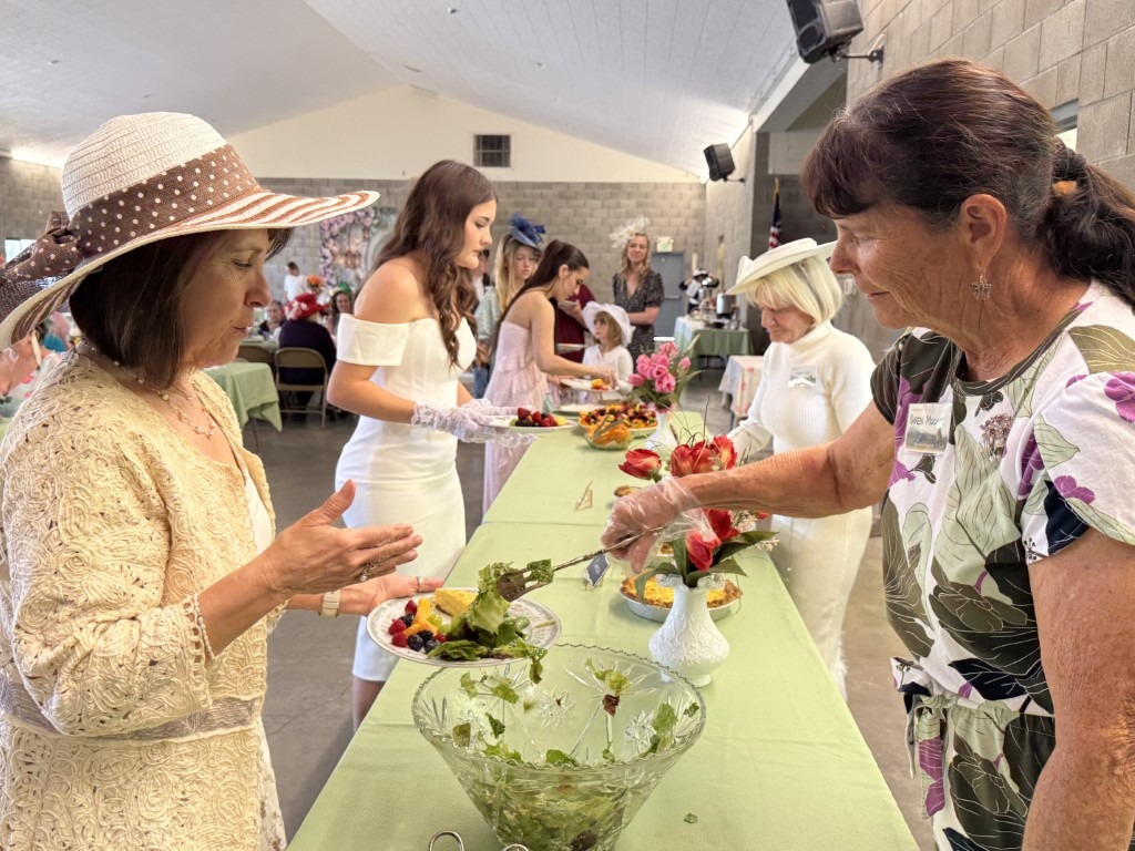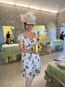 The afternoon included contests for best hat and best attire, along with raffles and a silent auction. Donated items ranged from handmade goods and floral arrangements to household and religious pieces and books, reflecting the character and generosity of the community.