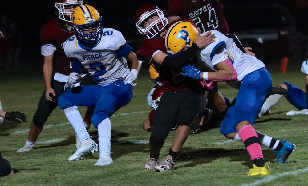 Unlike the previous three match-ups between the two teams, last Friday night in Colusa, the RedHawks withstood the onslaught of the Bear ground attack and made a defensive stand with 1:07 remaining in the game to edge Pierce 14-13, and push their record to 6-0 this season.