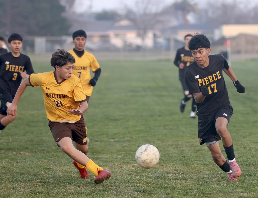 WILLIAMS, CA (MPG) – A cool, crisp afternoon at McCarl Field last Thursday was the backdrop for a competitive doubleheader of Sacramento Valley League soccer as the hometown Yellowjackets played county rival Pierce to a 1-1 draw in both the girl’s and boy’s matches.