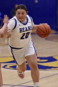 In Durham Nita Rodriguez, who played a half in goal for the Bear soccer team prior to the start of the basketball game, posted a double-double that included 11 points and 13 rebounds.