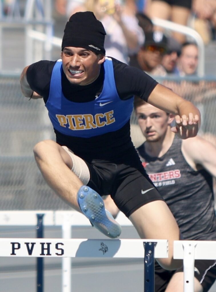 Pierce’s JR Figueroa raced to a second-place finish in the 110-meter hurdles at West Valley’s Eagle Classic Relays held in Cottonwood on March 27.
